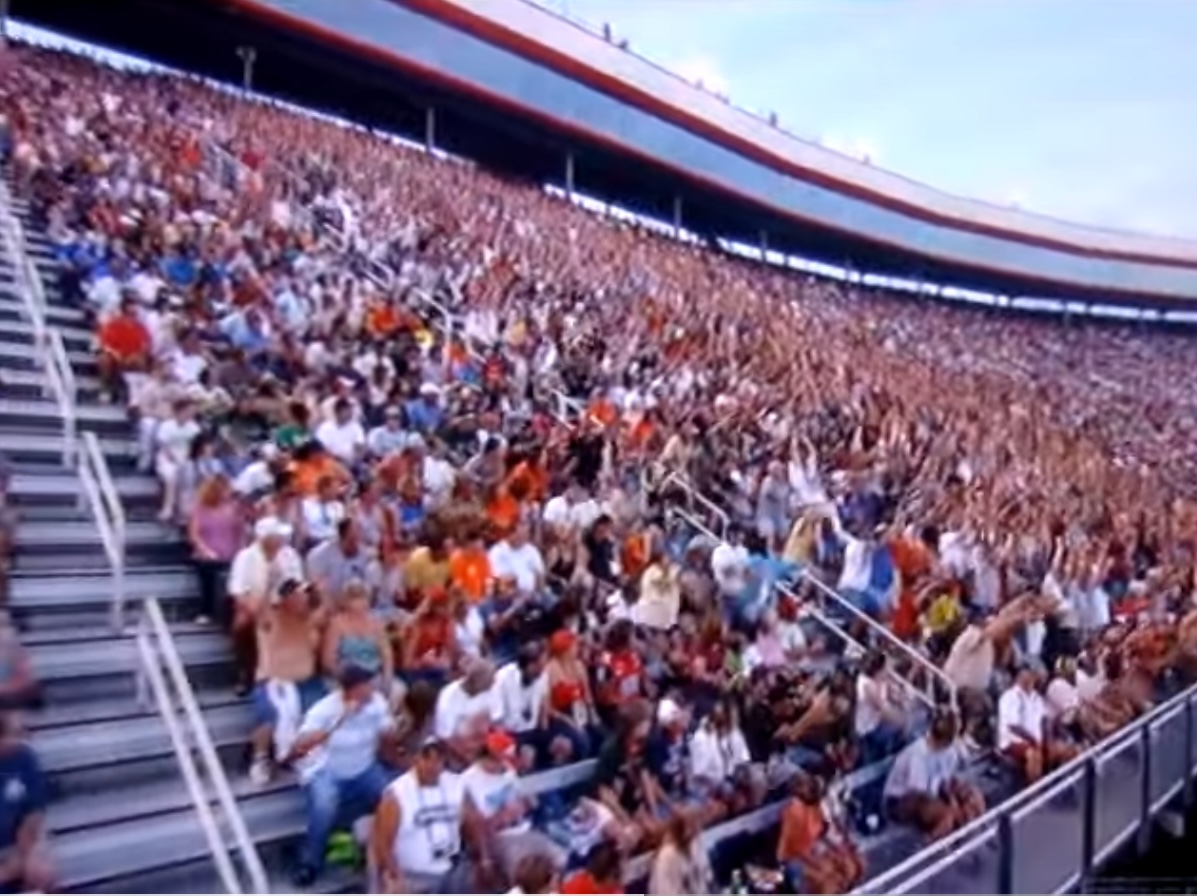 In late August of 2008, at the “Sharpie 500″ Sprint Cup at Bristol Motor Speedway, the pre-race festivities included an official attempt at the world’s largest wave, with an estimated 168,000 people taking part.